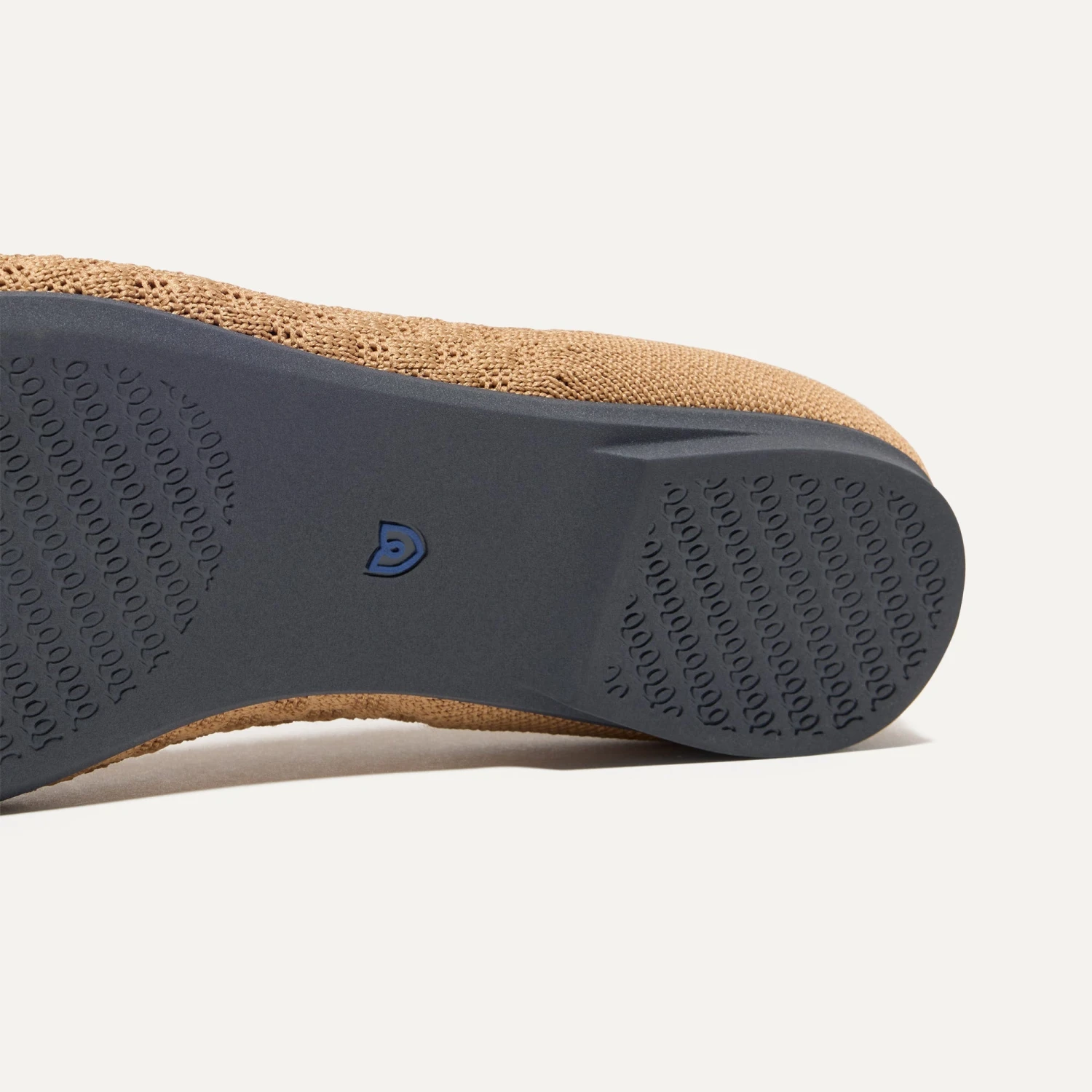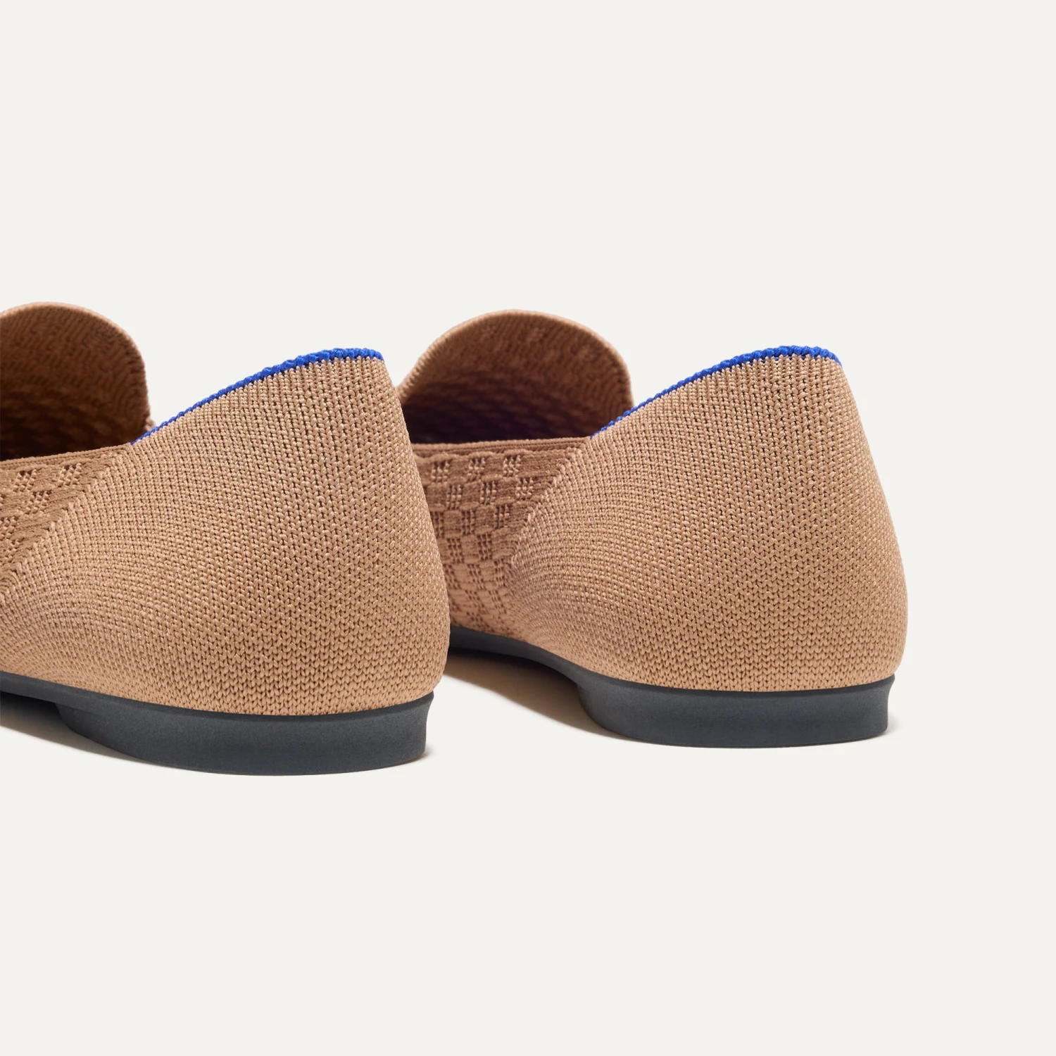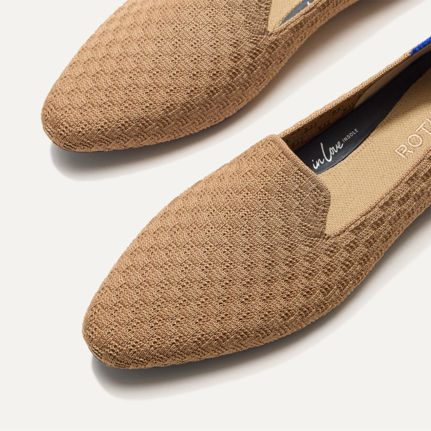 - Soft, flexible upper in a camel brown basketweave pattern.