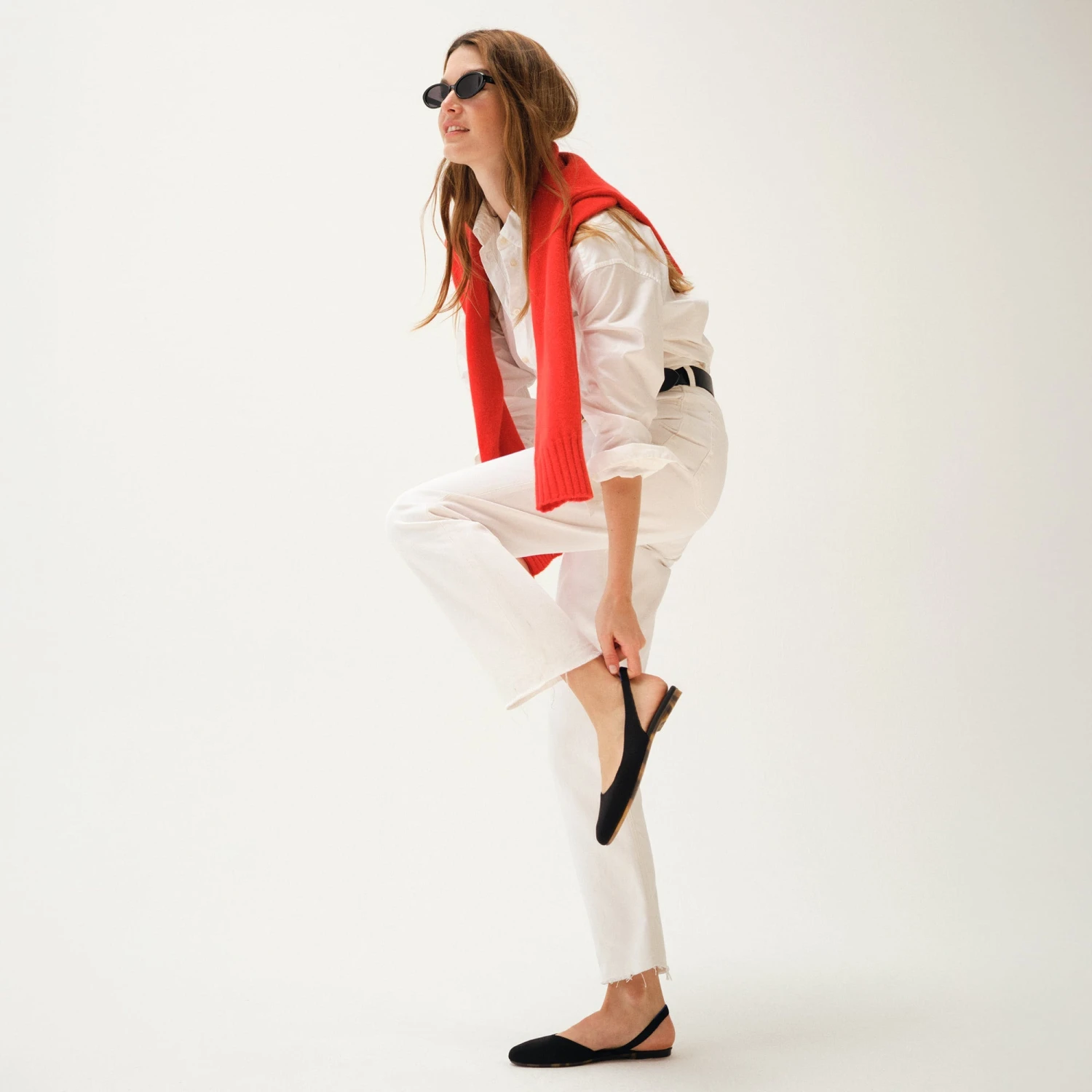 - Open-back style with a stretchy sling strap that hugs your heel.