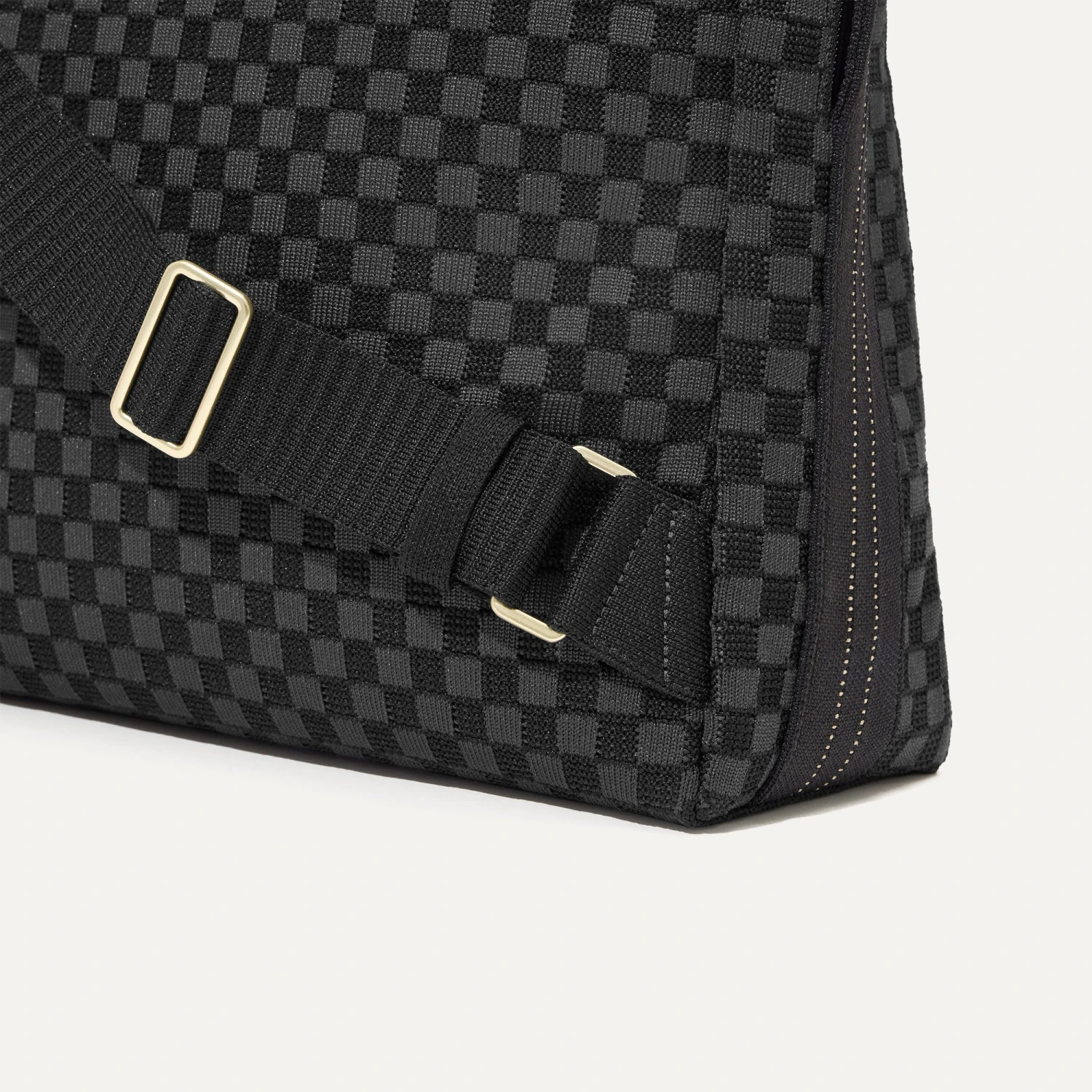 - Sleek design in a black basketweave pattern.