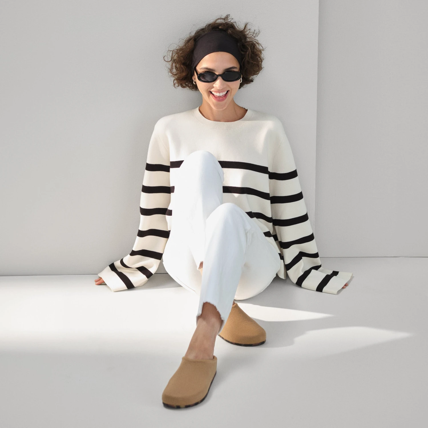 - Soft, V topline upper in camel brown knit with RWS-certified merino wool.