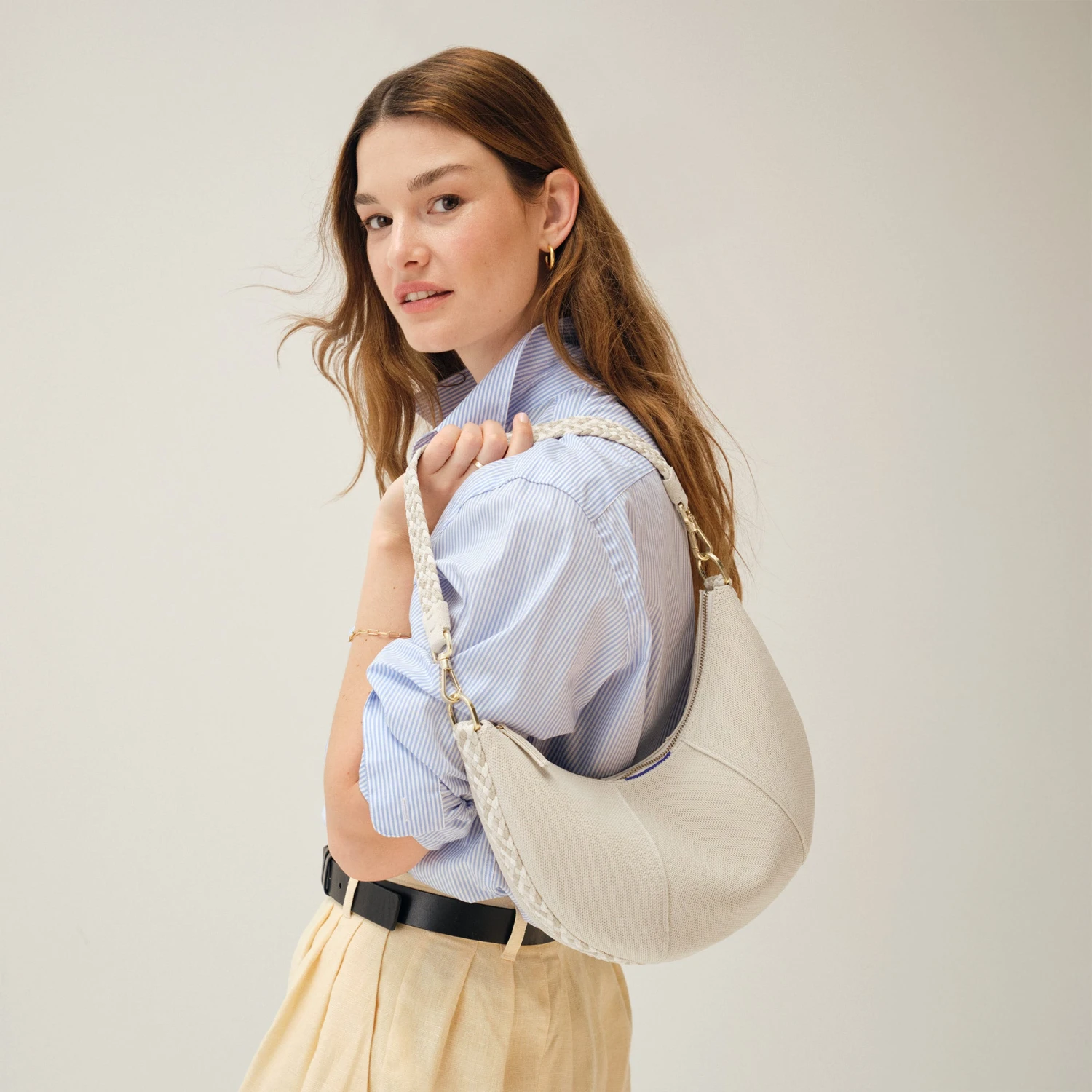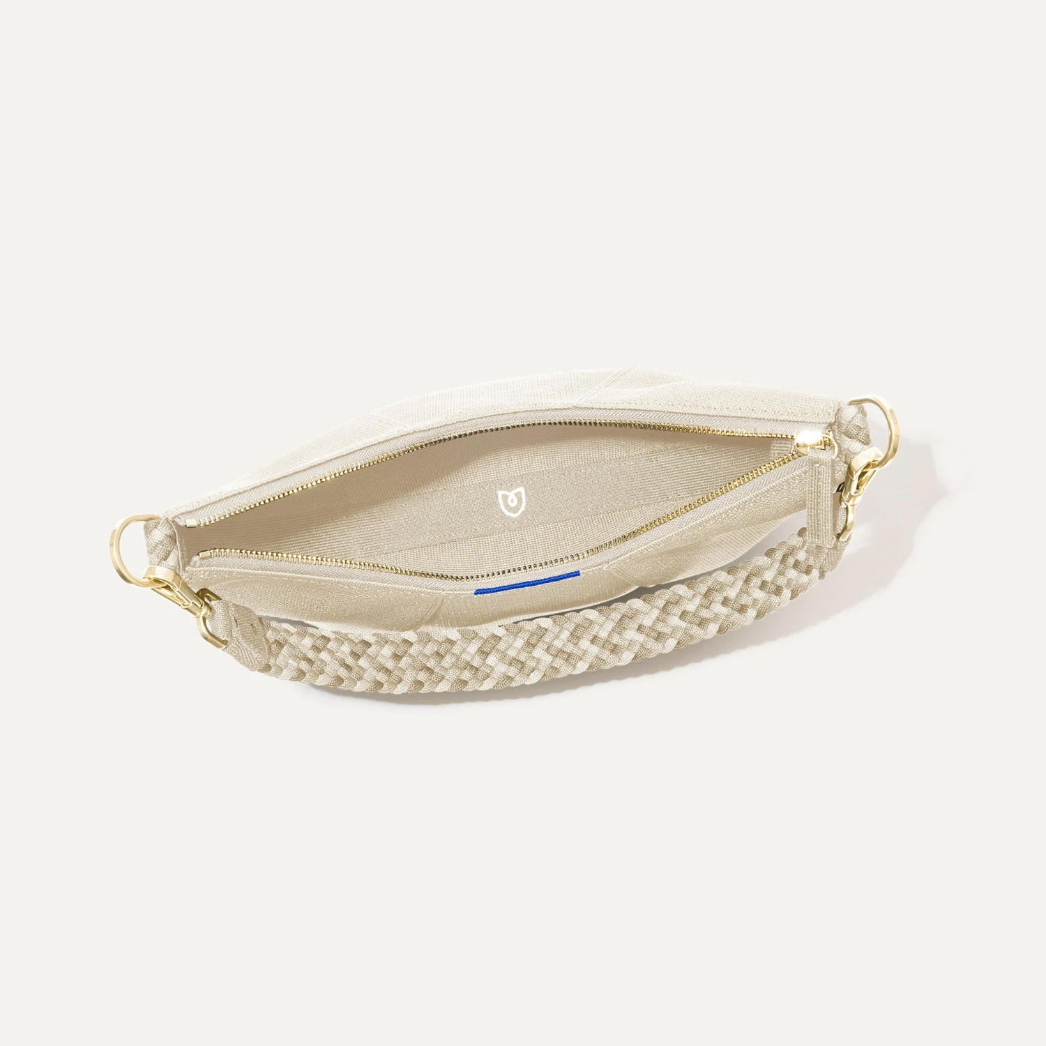 - Detachable braided strap in ivory and beige lets you wear it as a shoulder bag, or you can mix and match with our bag straps.