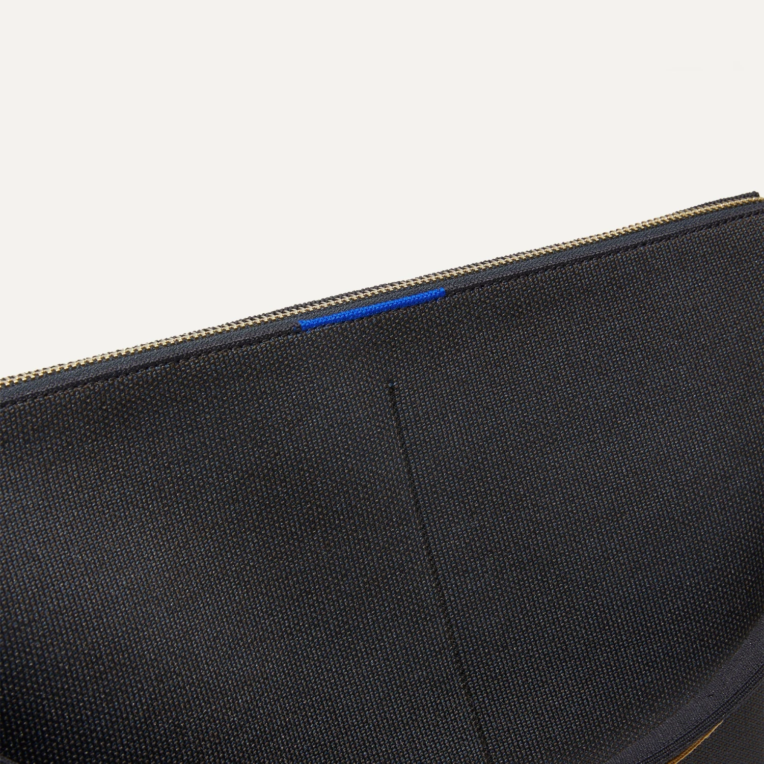 - Sleek design in an almost black, deep blue hue, with a smooth zip closure to protect your essentials.