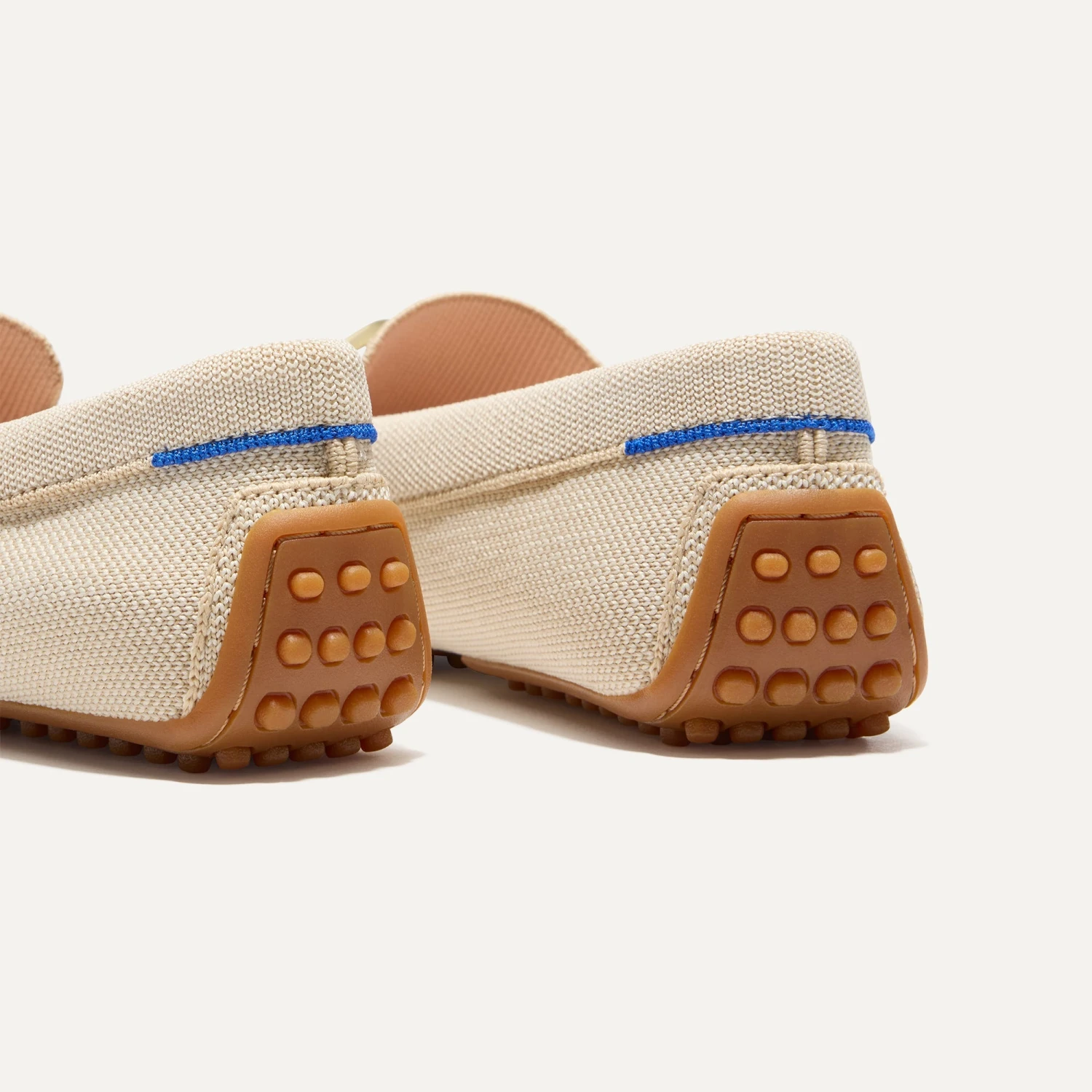 - Soft, flexible upper in light sesame with a gold hardware signet bit on the vamp.