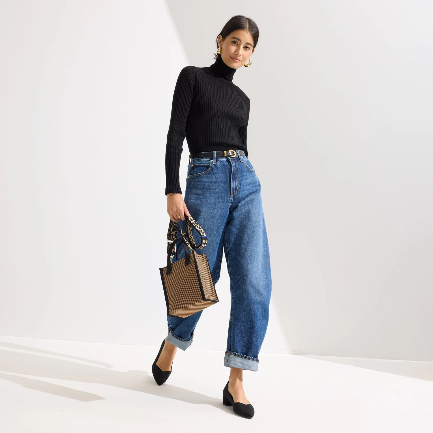 - 1.25-in (3.2-cm) knit-wrapped block heel for added height.