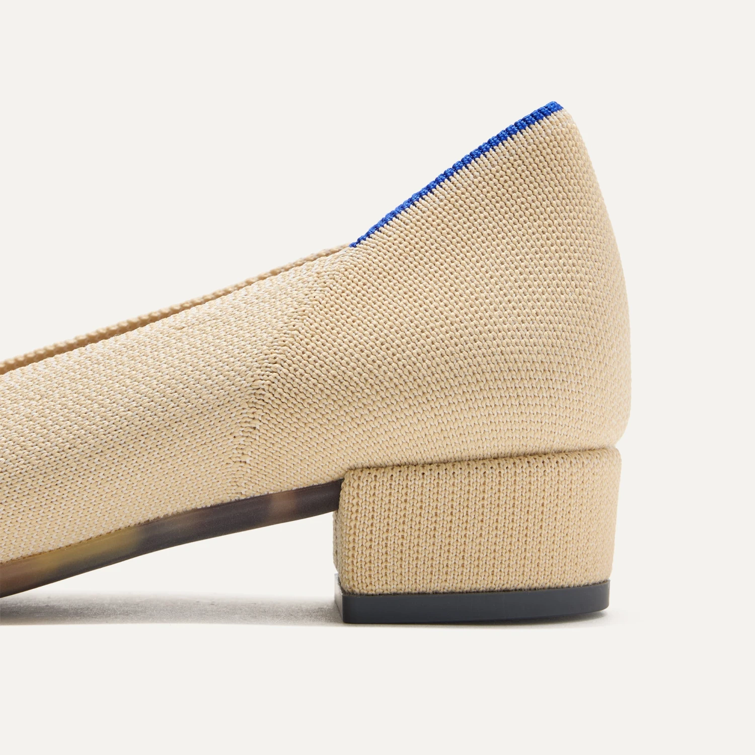 - 1.25-in (3.2-cm) knit-wrapped block heel for added height.