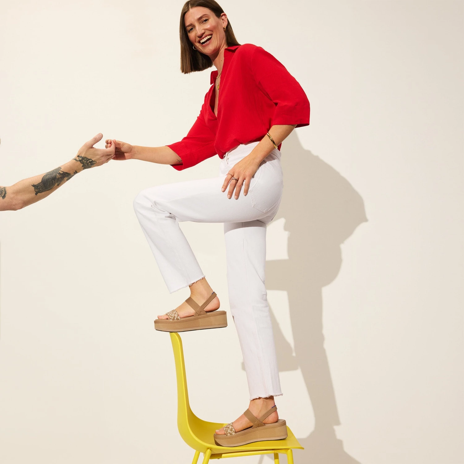 The Lightweight Wedge Sandal in Beach Sand Woven