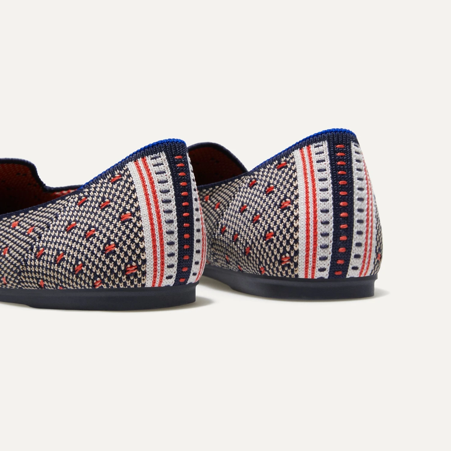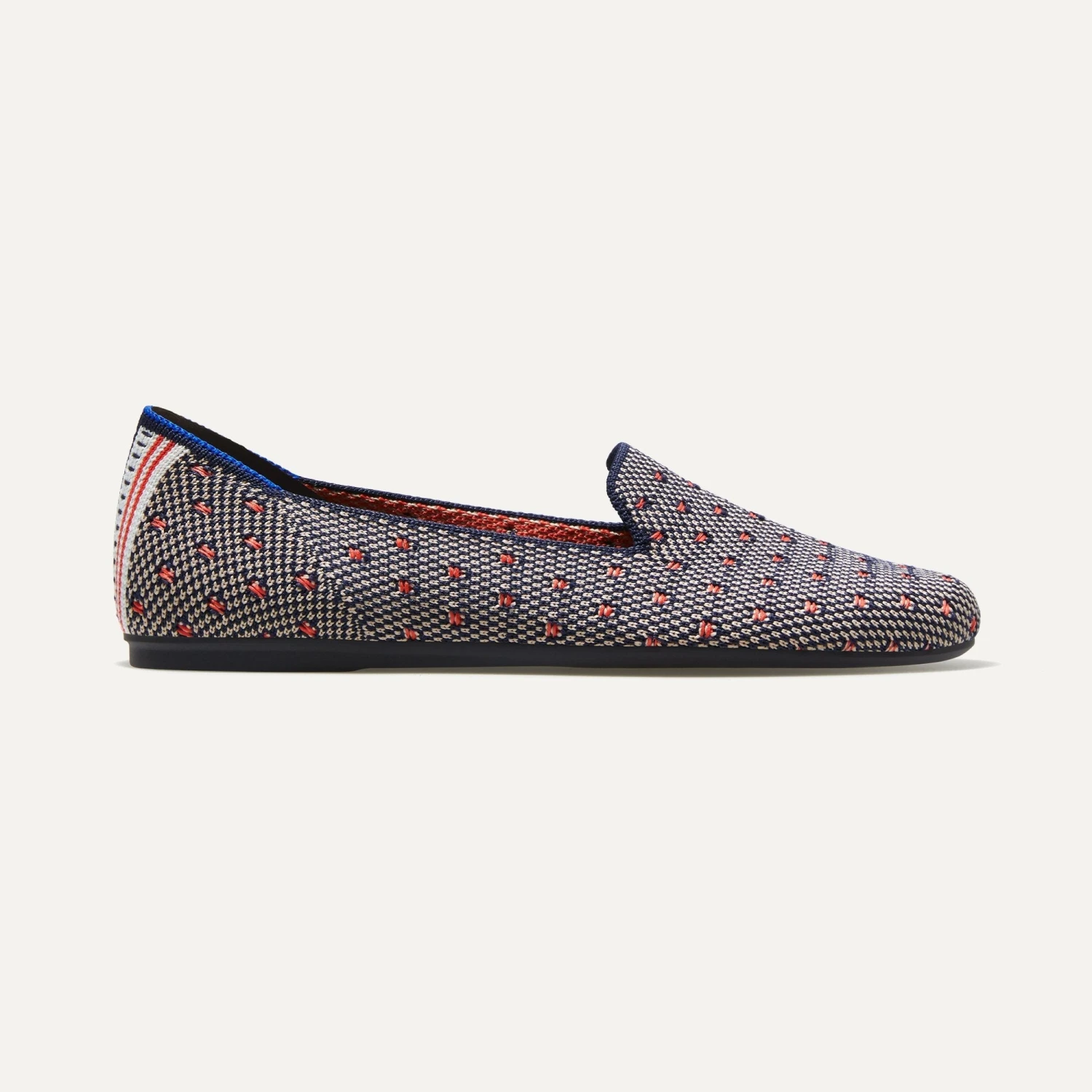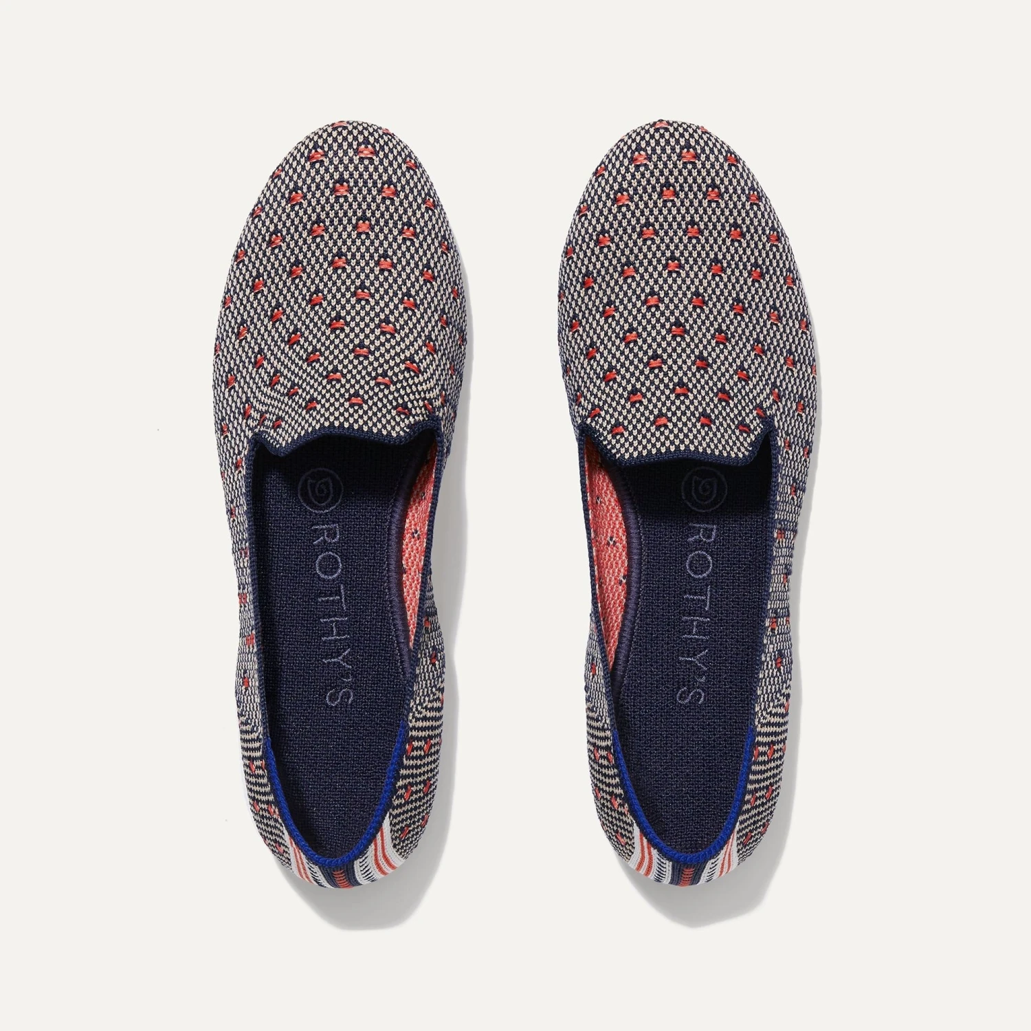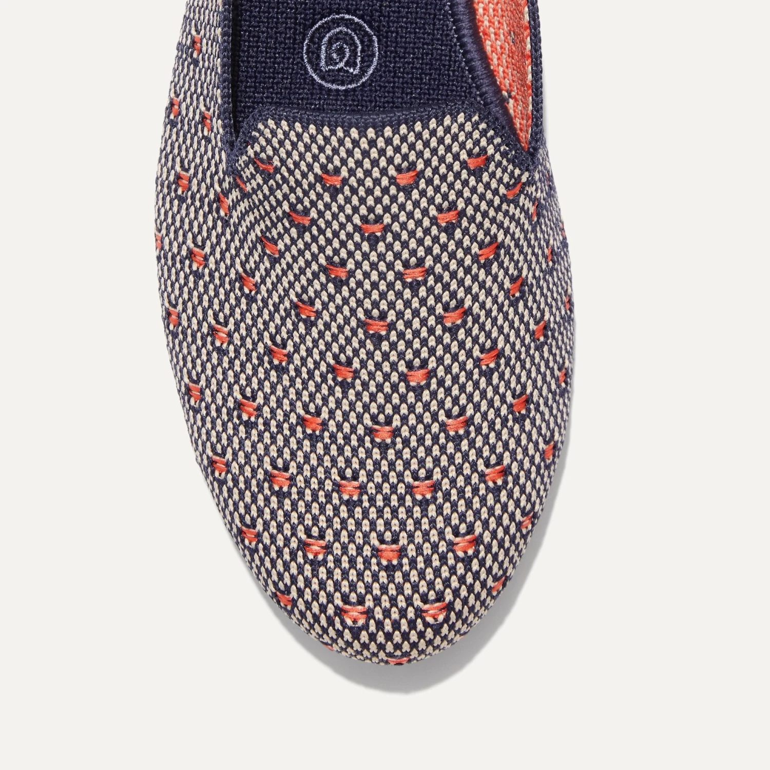 - Soft, flexible upper in ivory and dark navy with dotted stitch detailing in bright coral.