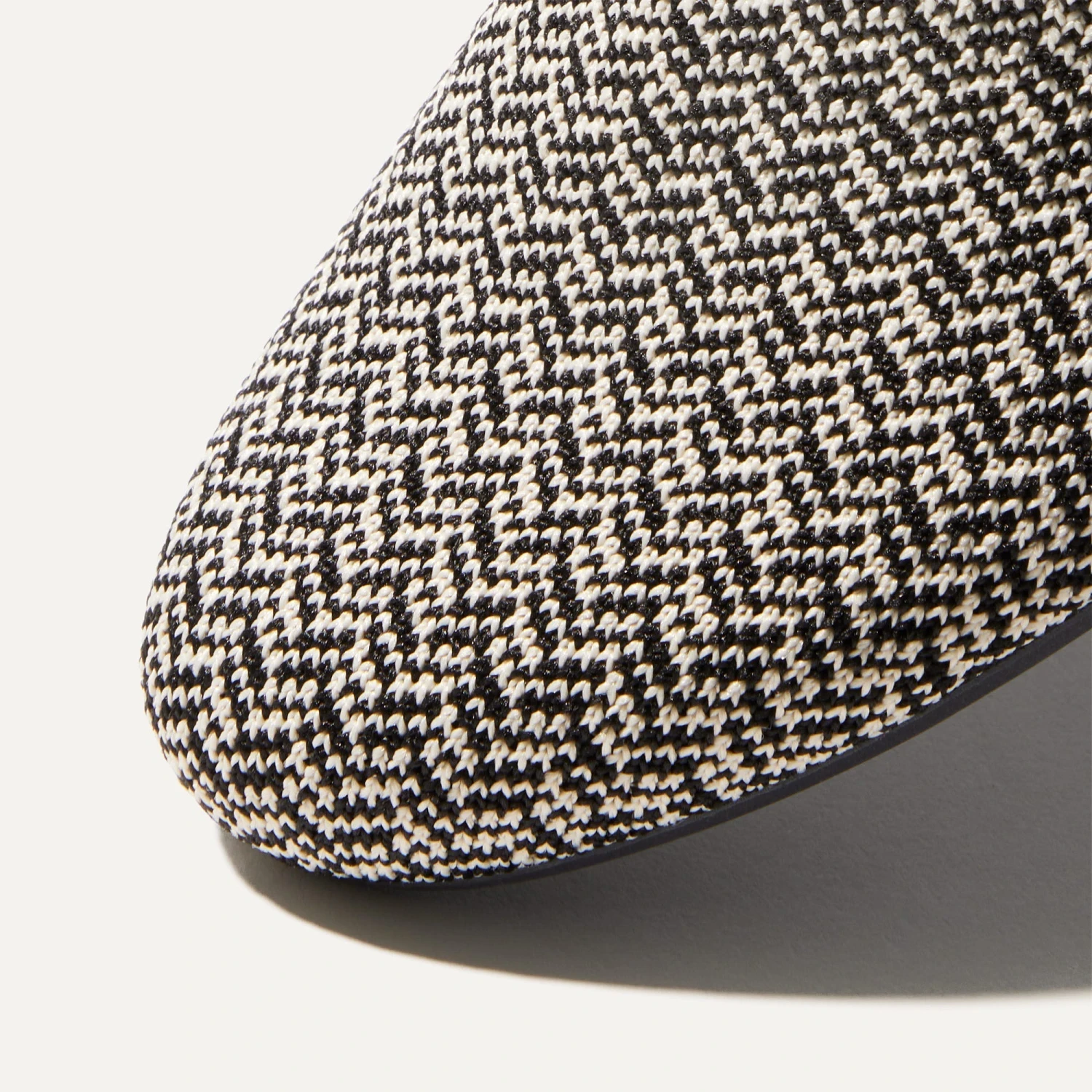- Soft, flexible upper in a cream and black herringbone pattern.