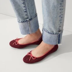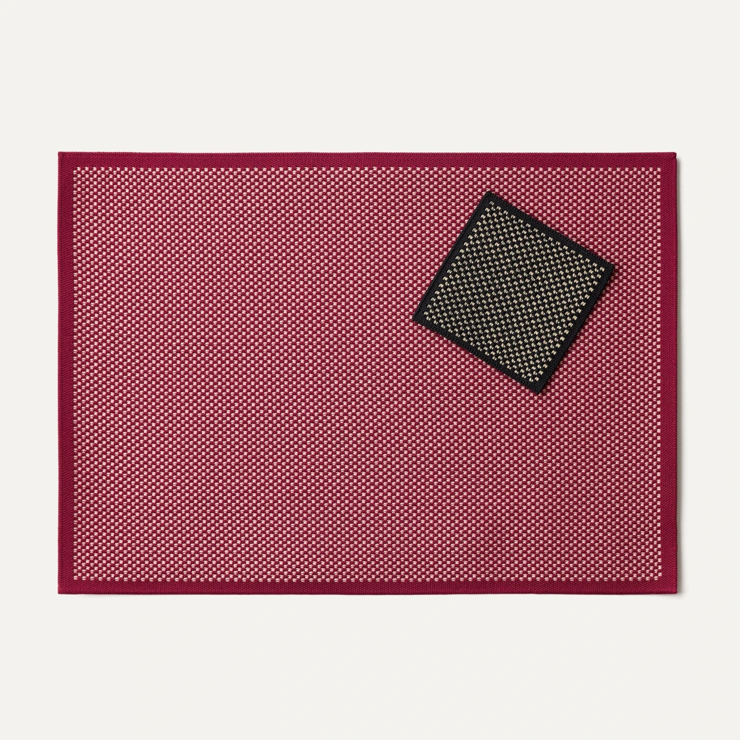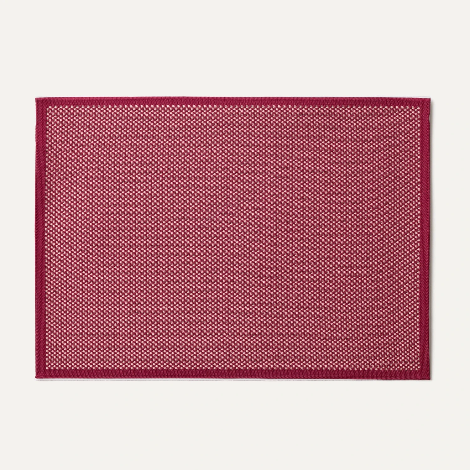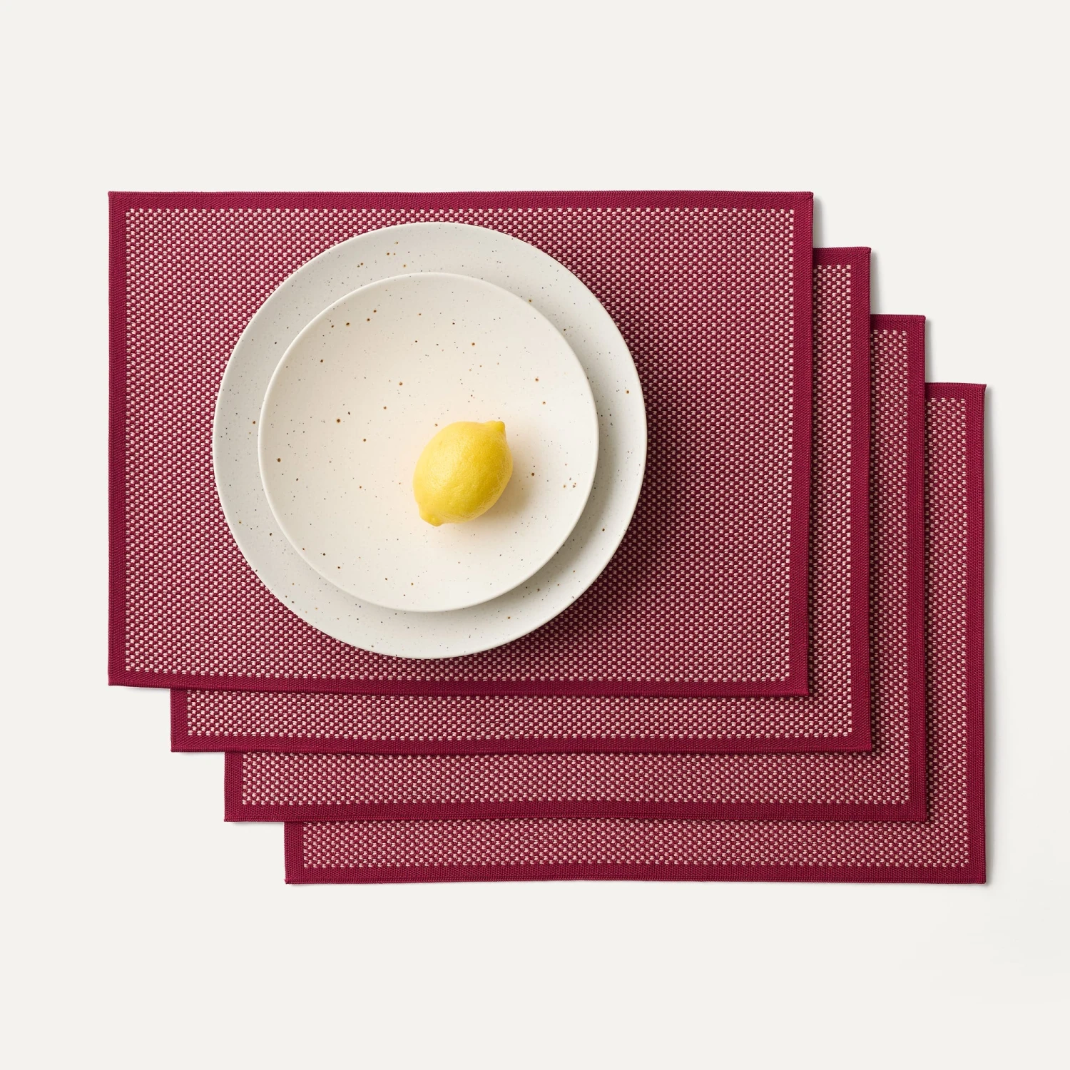 - Set of four placemats in a burgundy and dusty pink purl-stitch texture.
