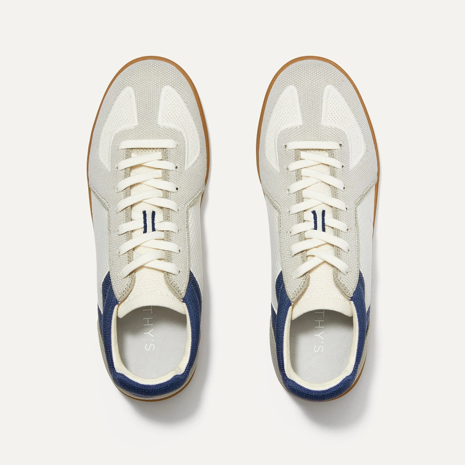 - Flexible color-blocked upper in off-white, light khaki and navy.