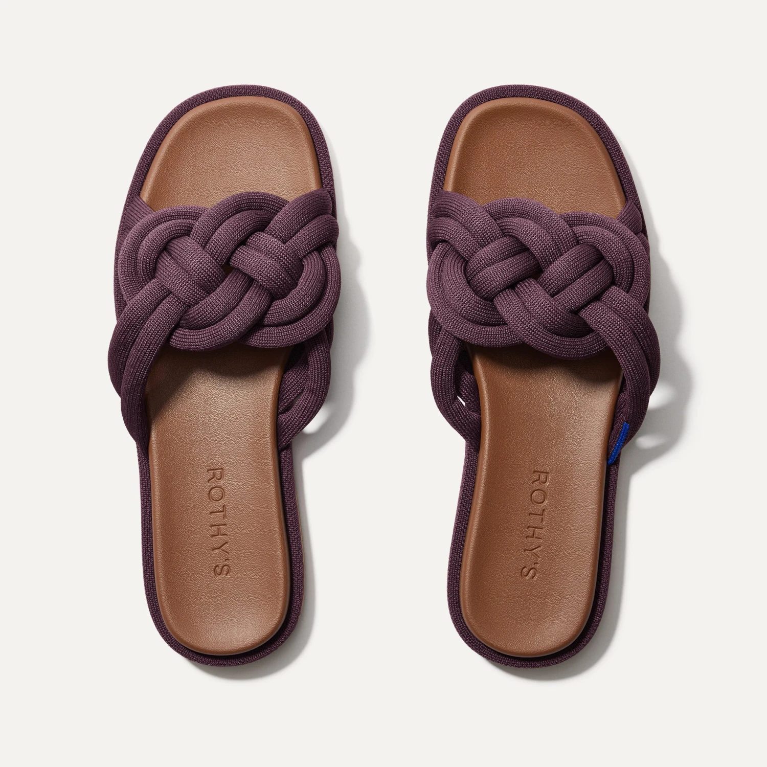 - Cushioned, interwoven straps in muted purple for a luxe style you can wear all day.